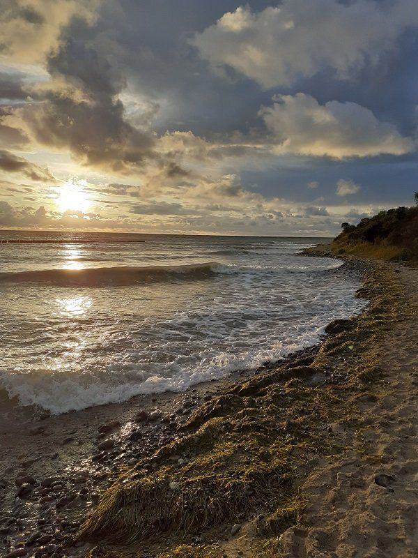 Die passende Unterbringung war da schon eine Herausforderung. Was wollen wir und was brauchen wir? Eine Ferienwohnung für uns zwei? Das wäre ein bisschen zu viel. Und auch eine Bleibe mit diversen Wellness-Angeboten war nicht nötig. So entschlossen wir uns für ein kleines Hotel. Übernachtung mit Frühstück und bei Bedarf ein warmes Abendessen. Mit Meeresrauschen geweckt werden, war ein schöner Gedanke. Und auch das bot das kleine Hotel. Mit einem Weg zur Ostsee, die man innerhalb von etwa zwei Minuten erreichte, hatte es eine sehr gute Lage. Da ist der Blick nach Hiddensee inklusive.