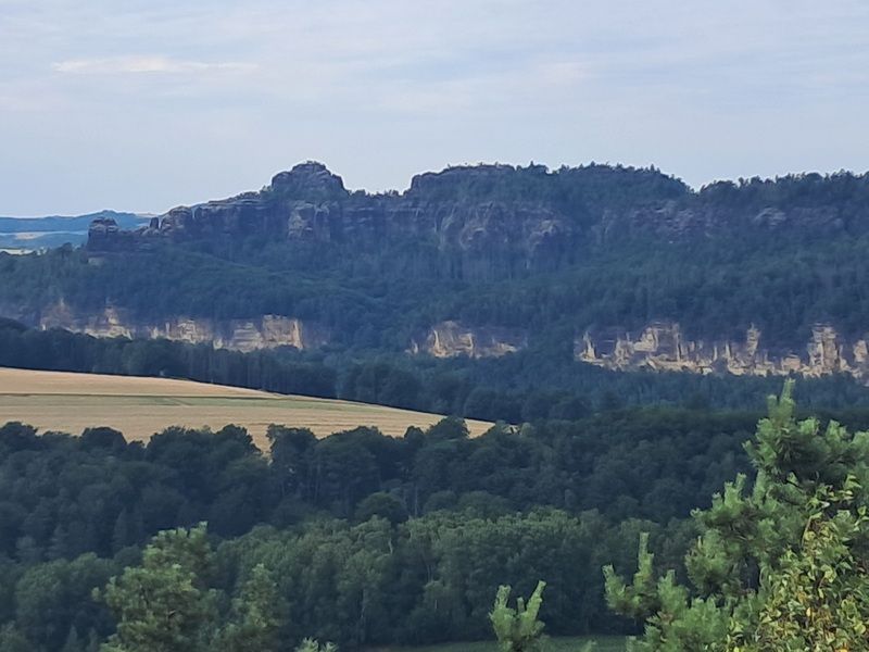 Weiter geht es dann durch die Orte Schöna, Reinhardtsdorf-Schöna und Reinhardtsdorf zurück Richtung Krippen. Und immer wenn man sich umblickt, hat man wieder eine schöne Aussicht auf die Sandsteinformationen entlang der Elbe. Der Wanderweg befindet sich zu großen Teilen im Wald. Lediglich durch die Orte führt der Weg über Schotter oder entlang der Straße. Diese Wanderung hat ihren Reiz, da sie durch eine malerische Landschaft führt.