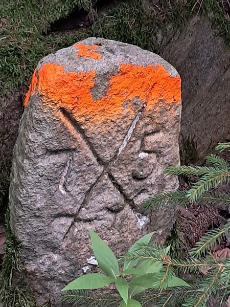 Nach der Wanderung auf dem Zisterzienserweg, geht es dieses Mal auf eine Rundwanderung um die Bergstadt Jöhstadt. Dieser kleine Ort liegt an der tschechischen Grenze und ist von Wiesen, Feldern und Wald umgeben. Gestartet wird auf dem Markt, auf dem man auch parken kann. Vorbei an einem Eiscafé und der ehemaligen Apotheke geht es stadtauswärts. Nach einigen Metern entlang der Straße, führt der Weg links vorbei an den letzten Häusern von Jöhstadt. Durch - Mitte September bereits abgeerntete - Felder und Wiesen, auf denen friedlich einige Kühe grasen, führt der Weg in den Wald. Hier findet man die letzten Brombeeren und schon die ersten Pilze. Der Ringweg führt direkt entlang der Grenze, was die kleinen weißen Grenzsteine neben dem Weg markieren. An der nächsten Querstraße, die die Route kreuzt, ist die Grenze mit einem Schild gekennzeichnet.